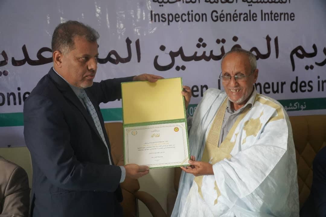 وخلال الحفل تم تكريم المفتش العام المتقاعد السيد سيدأحمد بوبكر، والسادة المفتشين المتقاعدين محمد سالم بيروك، ومحمد اماهي، ومحمد الأمين صمب كورو، من خلال تقديم شهادات تكريمية لهم.